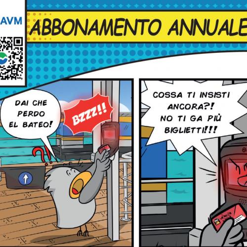 Prende avvio da mercoledì 20 agosto, la campagna abbonamenti 2025–2026 del servizio di trasporto pubblico gestito da AVM spa, tramite la società collegata Actv, che si rinnova con una comunicazione fresca e originale e un’anima tutta locale. È pensata per parlare direttamente ai cittadini di Venezia, con un tono ironico, leggero e familiare. A dare voce (anzi, becco) alla comunicazione è il gabbiano di A Venessia, disegnato dal fumettista e designer Sebastiano Mandruzzato. Un personaggio ormai noto a tutti, che torna a farci sorridere con le sue battute pungenti e le sue avventure quotidiane tra vaporetti, biglietterie e validatrici ribelli.