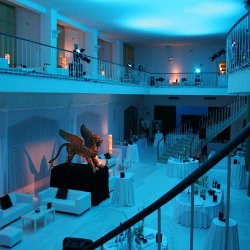 This building, on three floors, can accommodate up to 1.032 people in the Sala Grande and has an additional three rooms able to accommodate 48 to 120 people. It has also several additional meeting rooms and a large exhibition space of over 1,000 square meters. A spacious tunnel joins it to the Palazzo del Casinò.